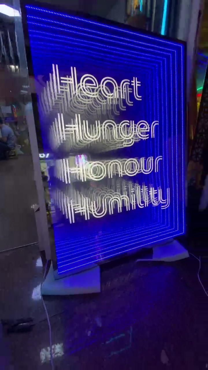 Khi nhìn vào hộp đèn, bạn sẽ thấy ánh sáng “nhân đôi liên tục” như kéo dài vô tận, tạo cảm giác chiều sâu độc đáo, rất nổi bật, hút mắt người xem cả ngày lẫn đêm.